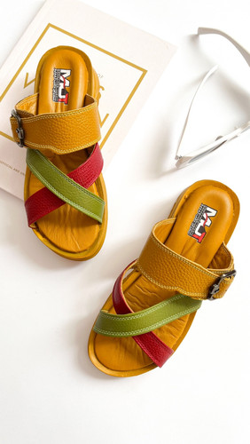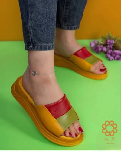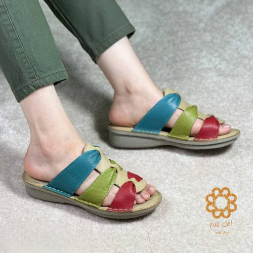 صندل چرم طبیعی کد 216 قرمز_سبز