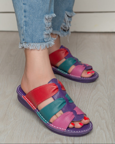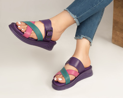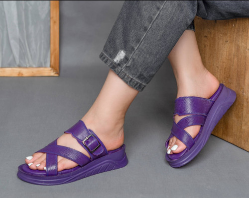 صندل زنانه چرم طبیعی کد 211 بنفش رنگی