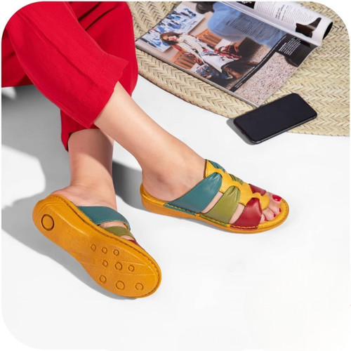 صندل زنانه چرم طبیعی کد 226 زرد قرمز