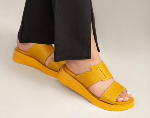 صندل زنانه چرم طبیعی کد 222 زرد رنگی