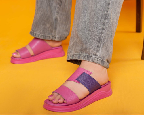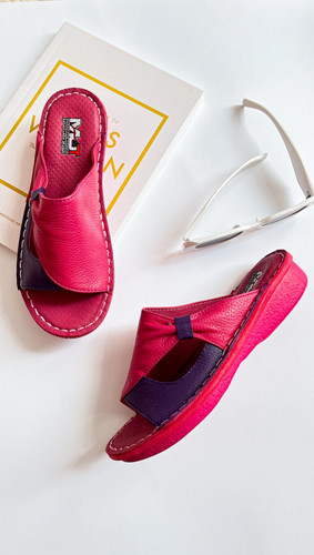 صندل چرم طبیعی کد216 صورتی بنفش- صورتی سفید