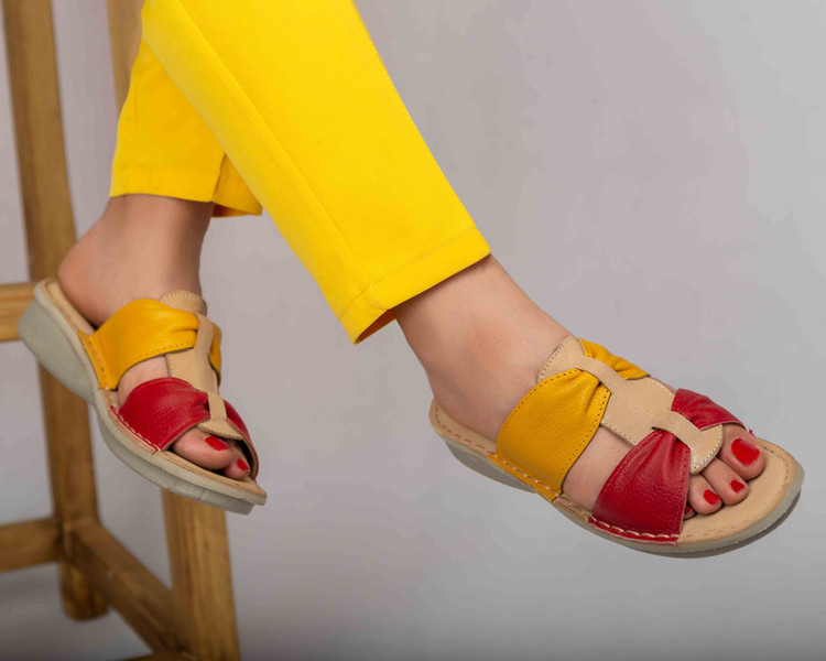 صندل زنانه چرم طبیعی کد 215 کرم سه رنگ