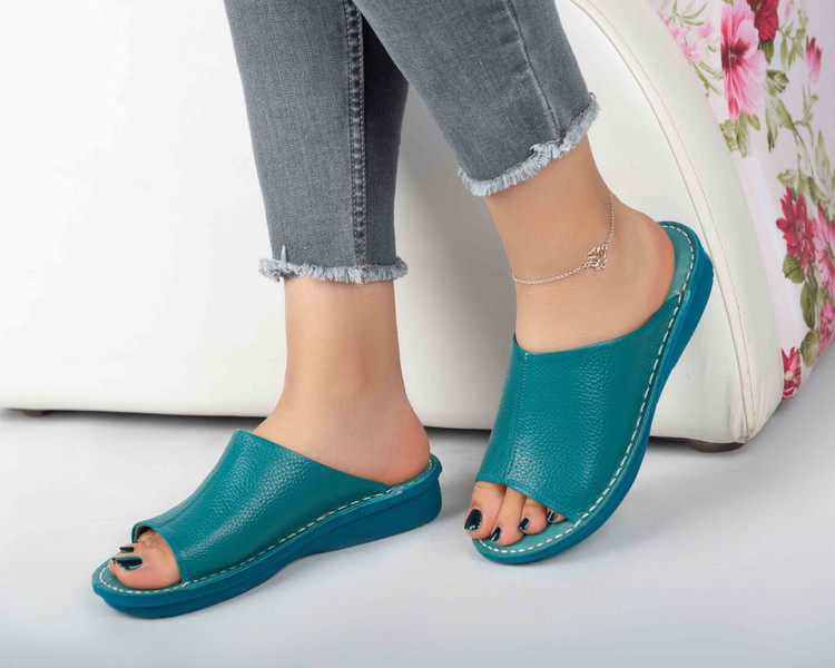 صندل زنانه چرم طبیعی کد 223 فیروزه ای