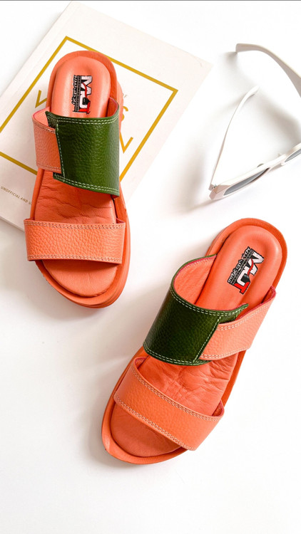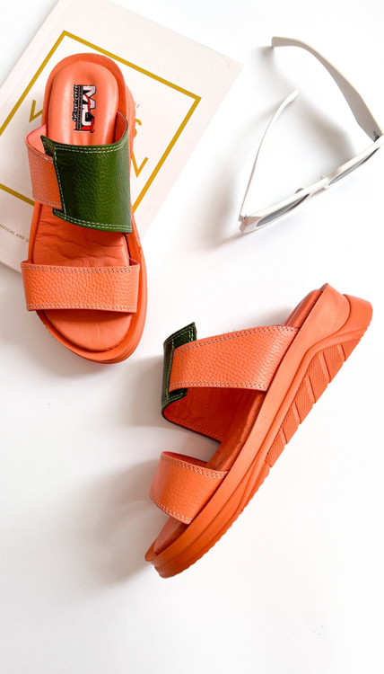 صندل زنانه چرم طبیعی کد 226هلویی سبز