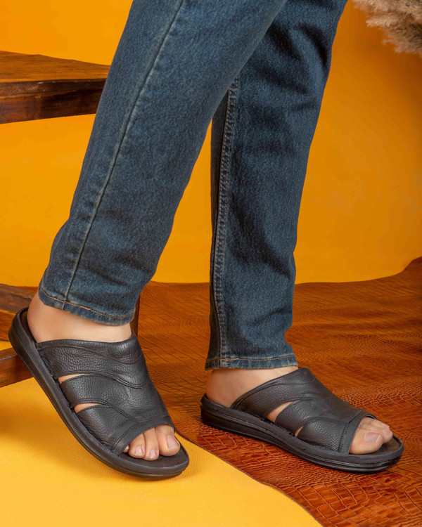 صندل مردانه چرم طبیعی تبریز کد 321 مشکی