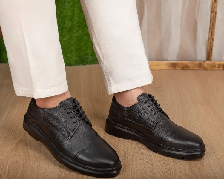 کفش مردانه چرم طبیعی تبریز کد 537 مشکی طبی