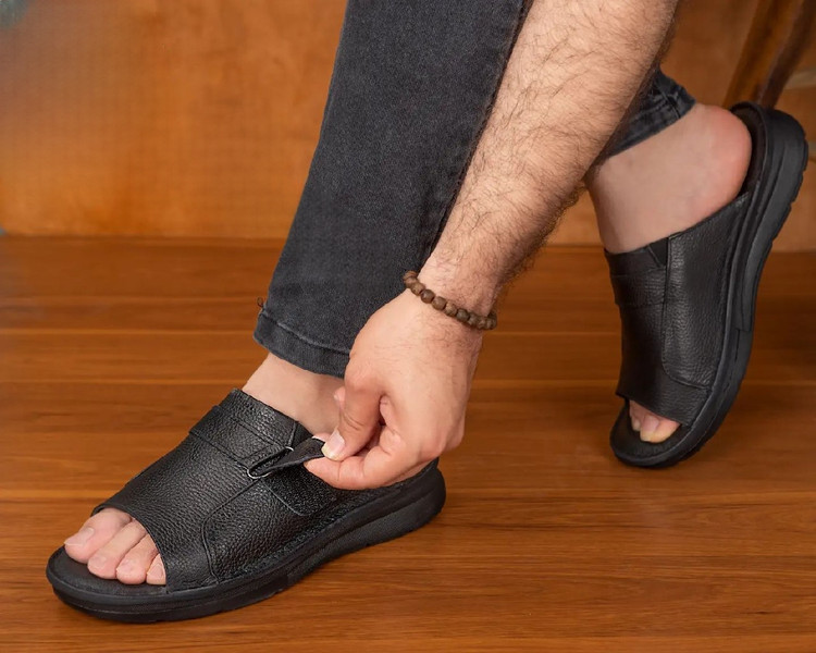 صندل مردانه چرم طبیعی تبریز کد 331 مشکی و قهوه ای