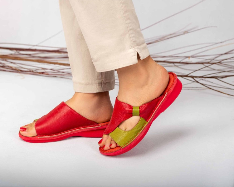 صندل چرم طبیعی کد 216 قرمز_سبز