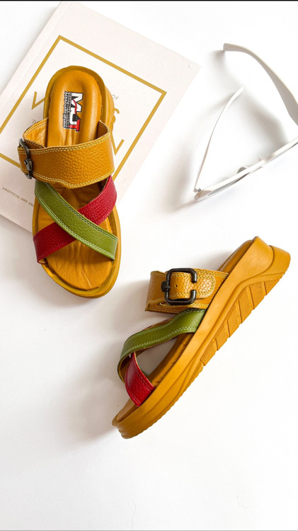 صندل زنانه چرم طبیعی کد 222 زرد رنگی(لیمویی رنگی)