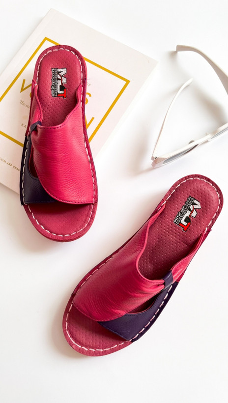 صندل چرم طبیعی کد216 صورتی بنفش- صورتی سفید
