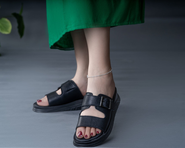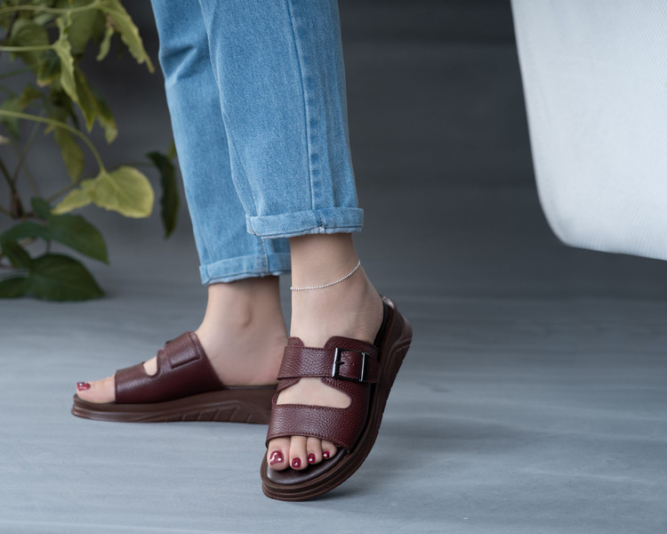 صندل زنانه چرم طبیعی کد 235 -مشکی -کرم-زرشکی