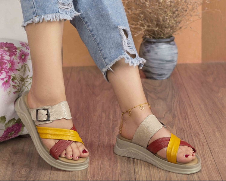 صندل زنانه چرم طبیعی کد 222 کرم رنگی صورتی رنگی